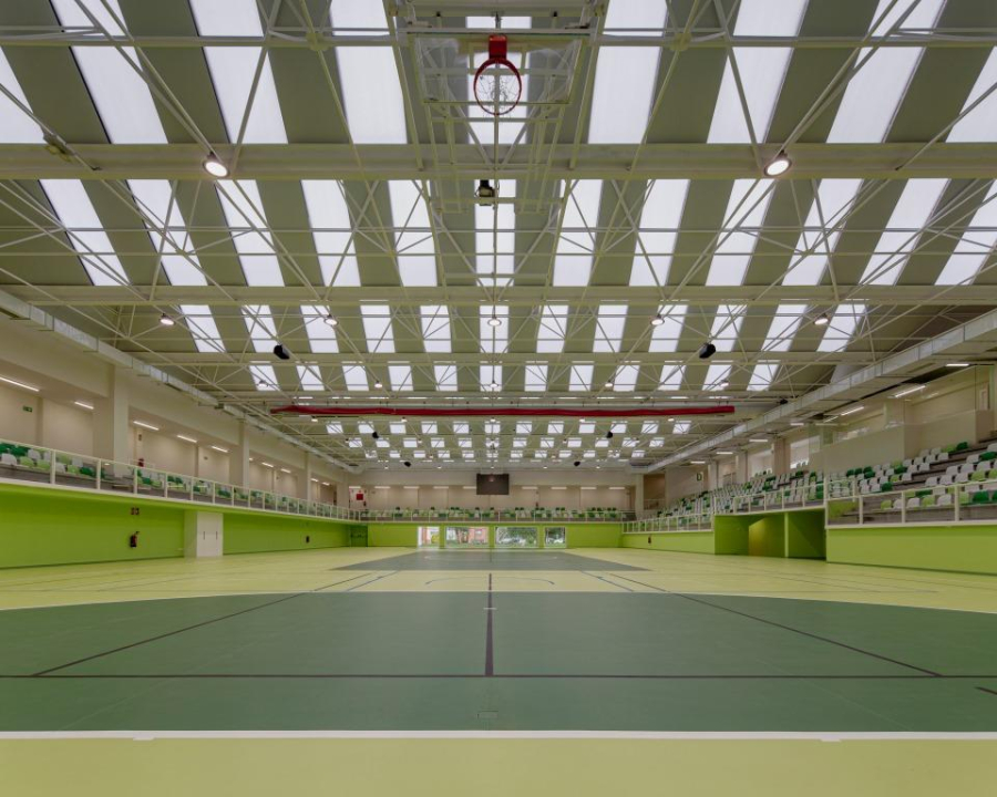 Compuesto por cancha polideportiva de 1.200 m2, 6 vestuarios, gimnasio para entrenamiento de clubs deportivos y gradas para 1.200 personas. Cuenta con pavimento sintético e iluminación artificial.