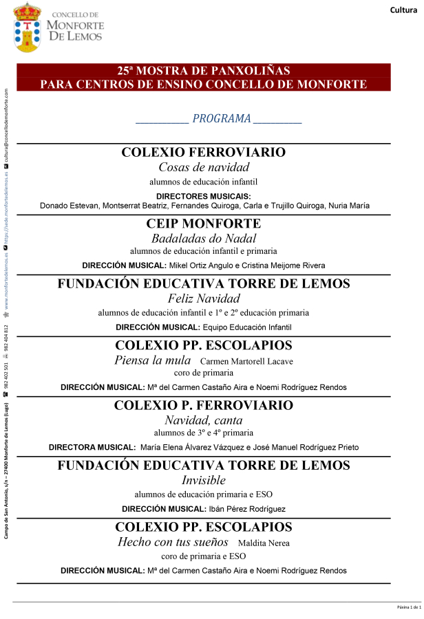 1- La Delegación de Cultura del Ayuntamiento de Monforte de Lemos, convoca un CONCURSO DE BELENES PARA CENTROS DE ENSEÑANZA DE MONFORTE.
