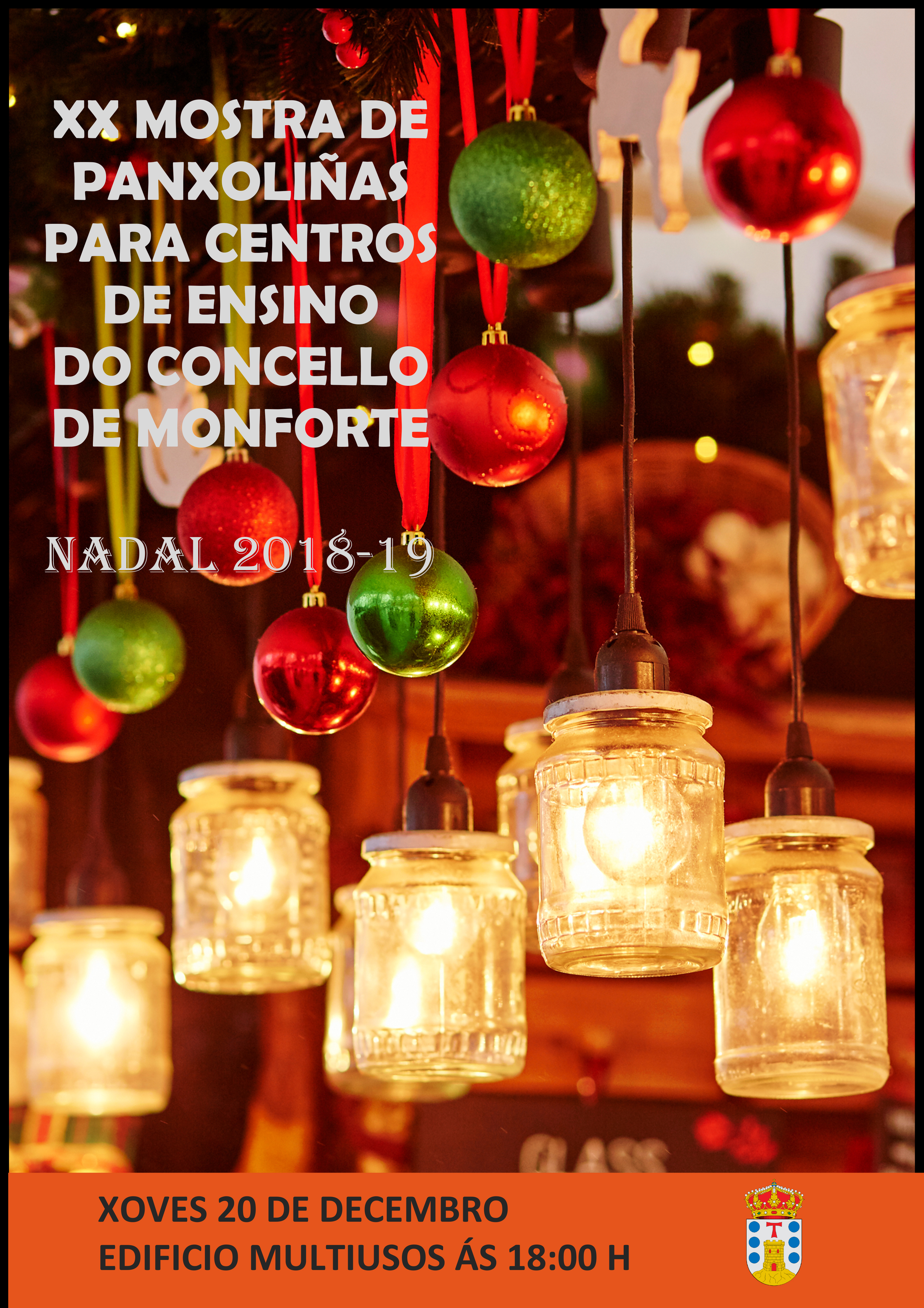 El jueves 20 de diciembre a las 18:00 h y en el Edificio Multiusos, niñas y niños de diferentes centros de enseñanza interpretarán composiciones musicales de navidad dentro de la Muestra de Villancicos para Centros de Enseñanza de Monforte de Lemos organizada por la Delegación Municipal de Cultura. La muestra, que se desarrolla en todas las ediciones con gran éxito, llega este año a su vigésima convocatoria y tiene como fin un año más despertar la afición al canto coral y a la música entre los niños y niñas de los centros de enseñanza de la ciudad.