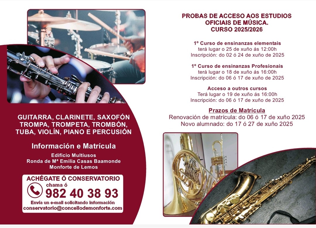 | O Concello anuncia que xa está aberto o prazo de inscrición para acceso e matrícula do curso 2025/2026 do Conservatorio de Música municipal |