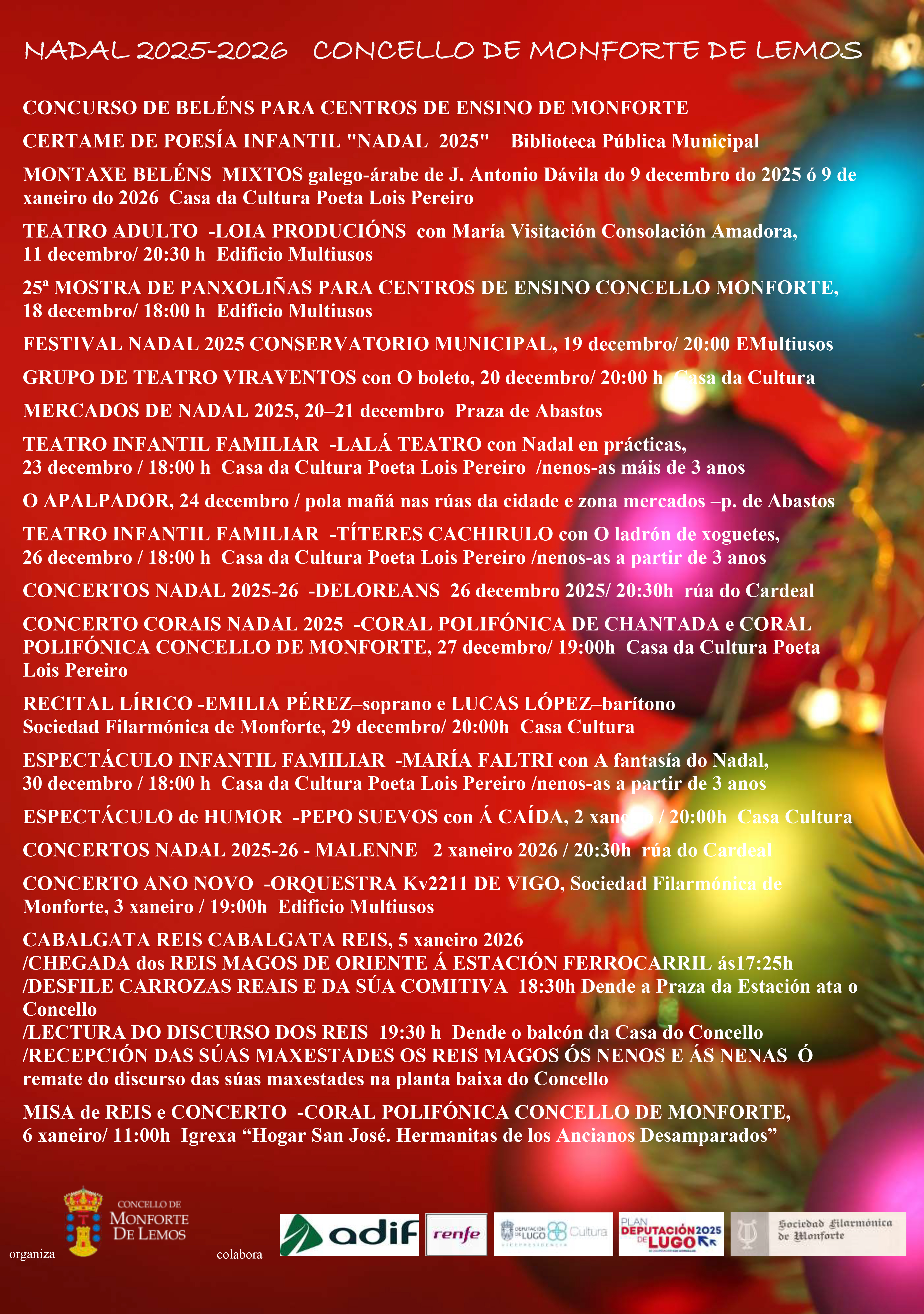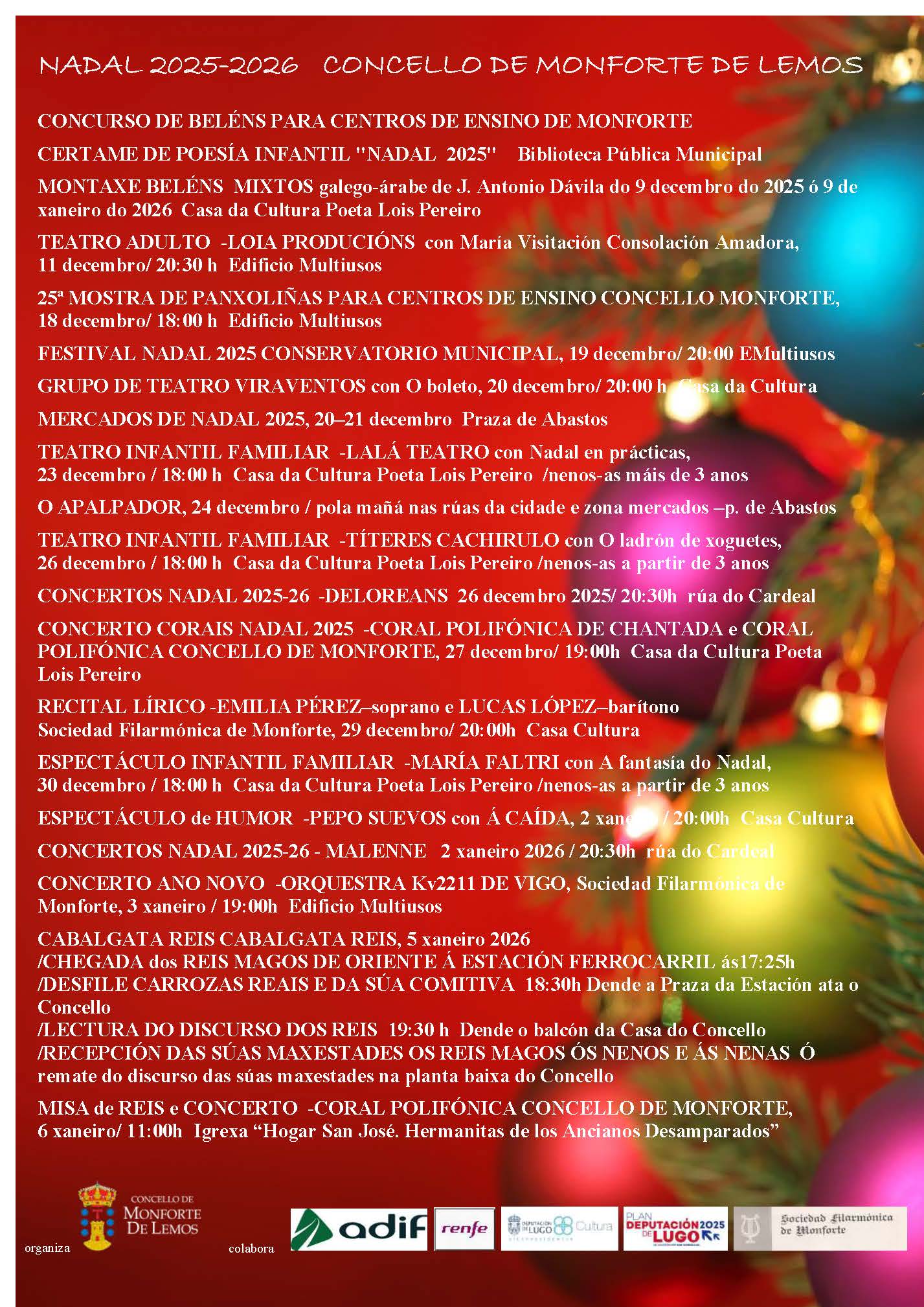 Monforte de Lemos, 1 de diciembre de 2025. El Ayuntamiento de Monforte iluminará la torre del Homenaje de color rojo hoy, 1 de diciembre, para conmemorar el Día Mundial del SIDA, una fecha de concienciación y sensibilización sobre el VIH, pero también de apoyo a quien convive con el virus y de recuerdo de los que fallecieron por esta causa. |