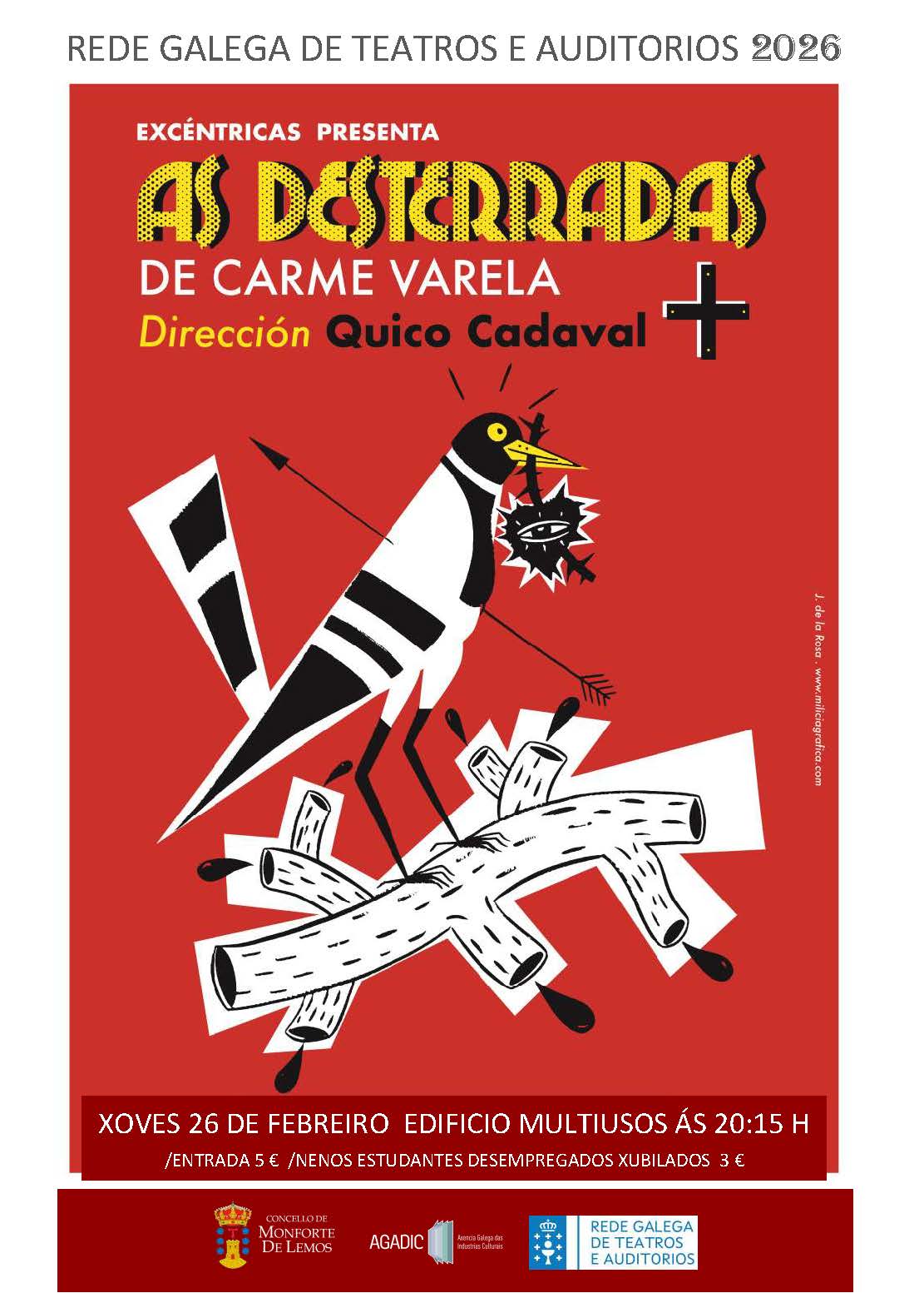 Monforte de Lemos, 26 de febrero de 2026. Los monfortinos y monfortinas tienen una nueva cita con el teatro este jueves, 26 de febrero a las 20.15 horas, en el Edificio Multiusos.