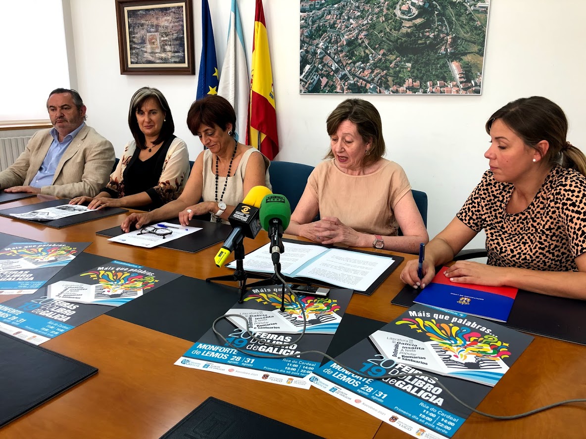 Monforte de Lemos, 23 de agosto de 2019. La 1ª Teniente de Alcalde de Monforte, Gloria Prada, y la Concejal de Cultura, Marina Doutón, presentaron hoy una nueva edición de la Feria del Libro de Monforte, que este año cumple su vigésimo segunda edición. Durante el acto, las representantes del Equipo de Gobierno municipales estuvieron acompañadas de Nani Regueira, la coordinadora General de la Federación de Libreros de Galicia; de José Manuel Balseiro, Delegado Territorial de la Xunta en Lugo; y de Pilar García Porto, Diputada provincial de Turismo y Promoción del Territorio de la Diputación de Lugo.