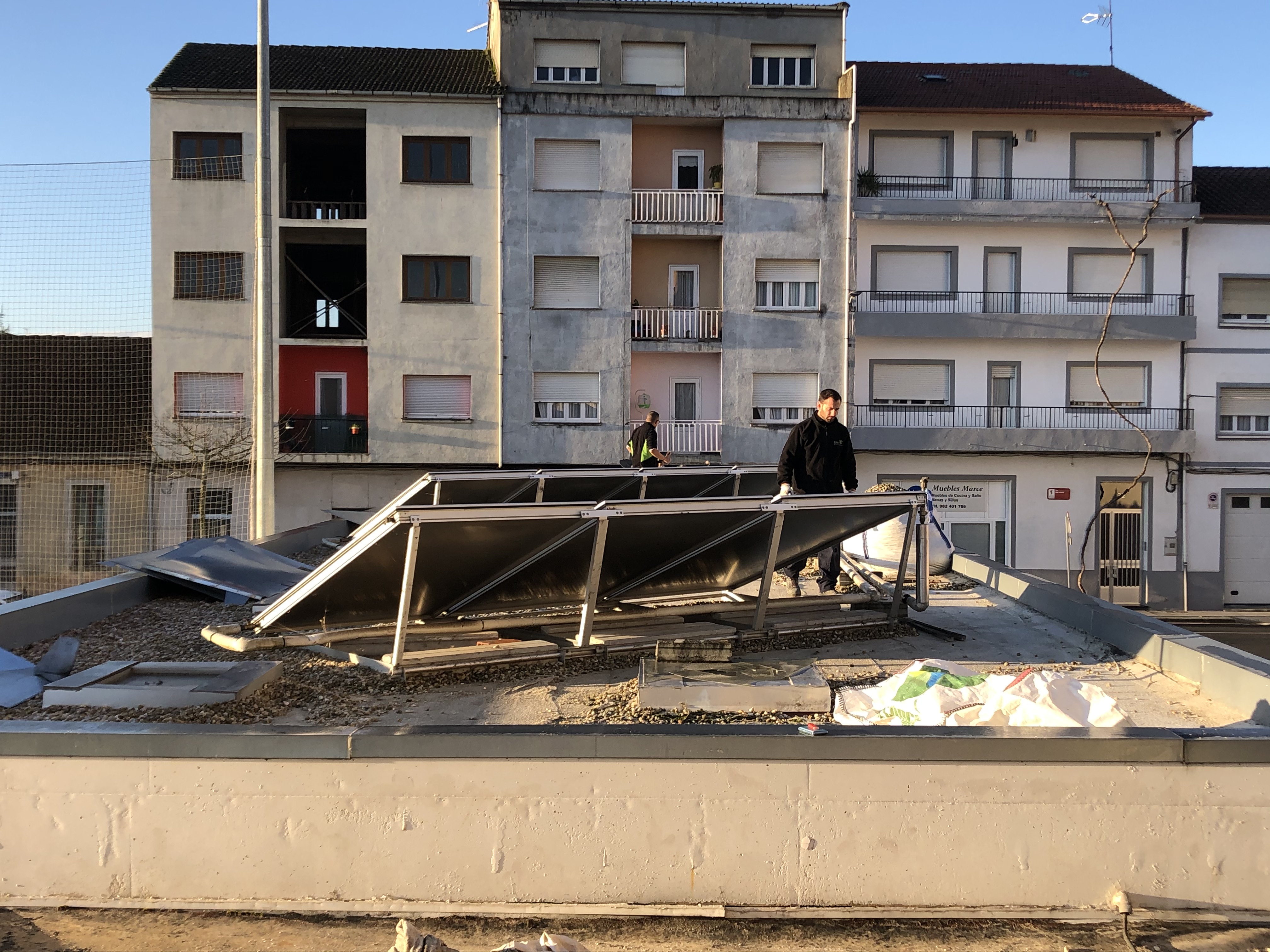 Monforte de Lemos, 3 de diciembre de 2019. El Alcalde de Monforte, José Tomé Roca, informa que ayer lunes 2 de diciembre dieron comienzo los trabajos de impermeabilización de la cubierta de los vestuarios de la fase nº 1 del Campo Municipal de Fútbol Luis Bodegas.
