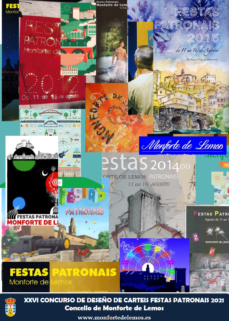 Monforte de Lemos, 23 de febrero de 2021. El Ayuntamiento de Monforte de Lemos convoca el XXVI Concurso de diseño de carteles de las Fiestas Patronales 2021, con el fin de escoger el cartel anunciador para el presente año 2021 de dichas fiestas patronales, “en previsión de que las circunstancias relacionadas con la crisis de la pandemia Covid-19 finalmente nos permitan organizar y celebrar estos festejos tan importantes para nuestra ciudad” subrayó el Alcalde, José Tomé Roca.