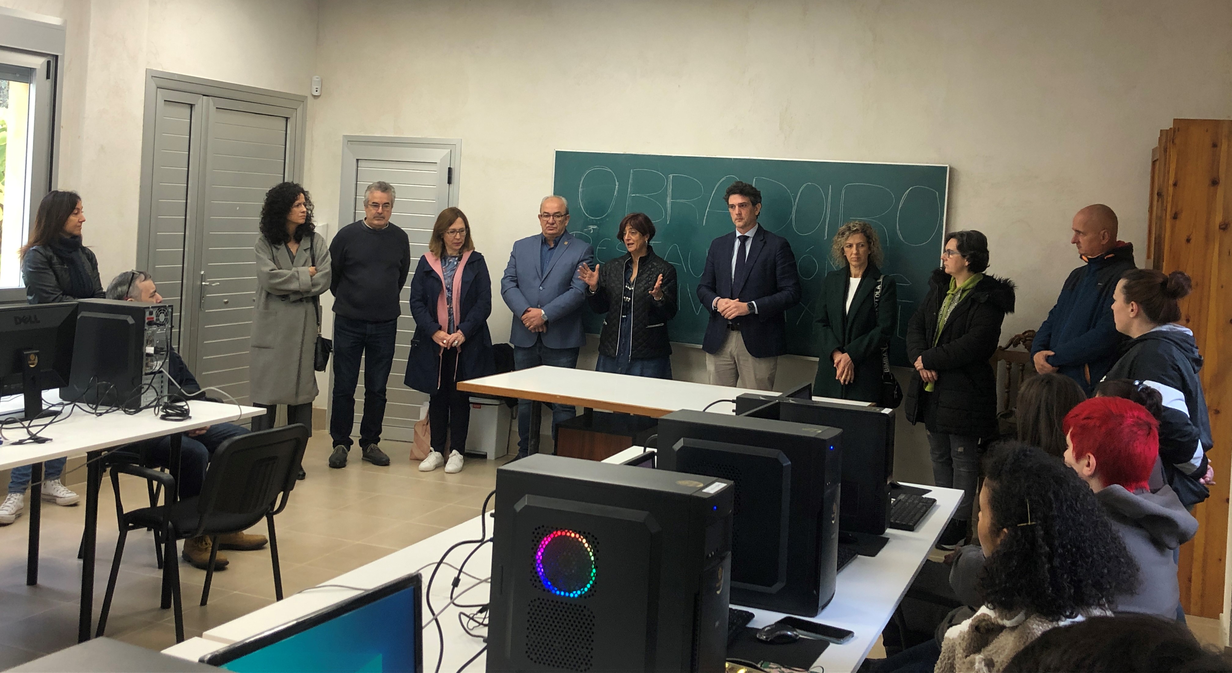 Monforte de Lemos, 2 de noviembre de 2022. La Teniente de Alcalde, Gloria Prada, acompañada por el Concejal de Obras, Medio Rural y Servicios, José Luis Losada, y representantes de la Xunta de Galicia, inauguró hoy los dos talleres de empleo que se desarrollarán desde hoy, y a lo largo de un año, en las instalaciones de la Escuela Obradoiro de la Pinguela.