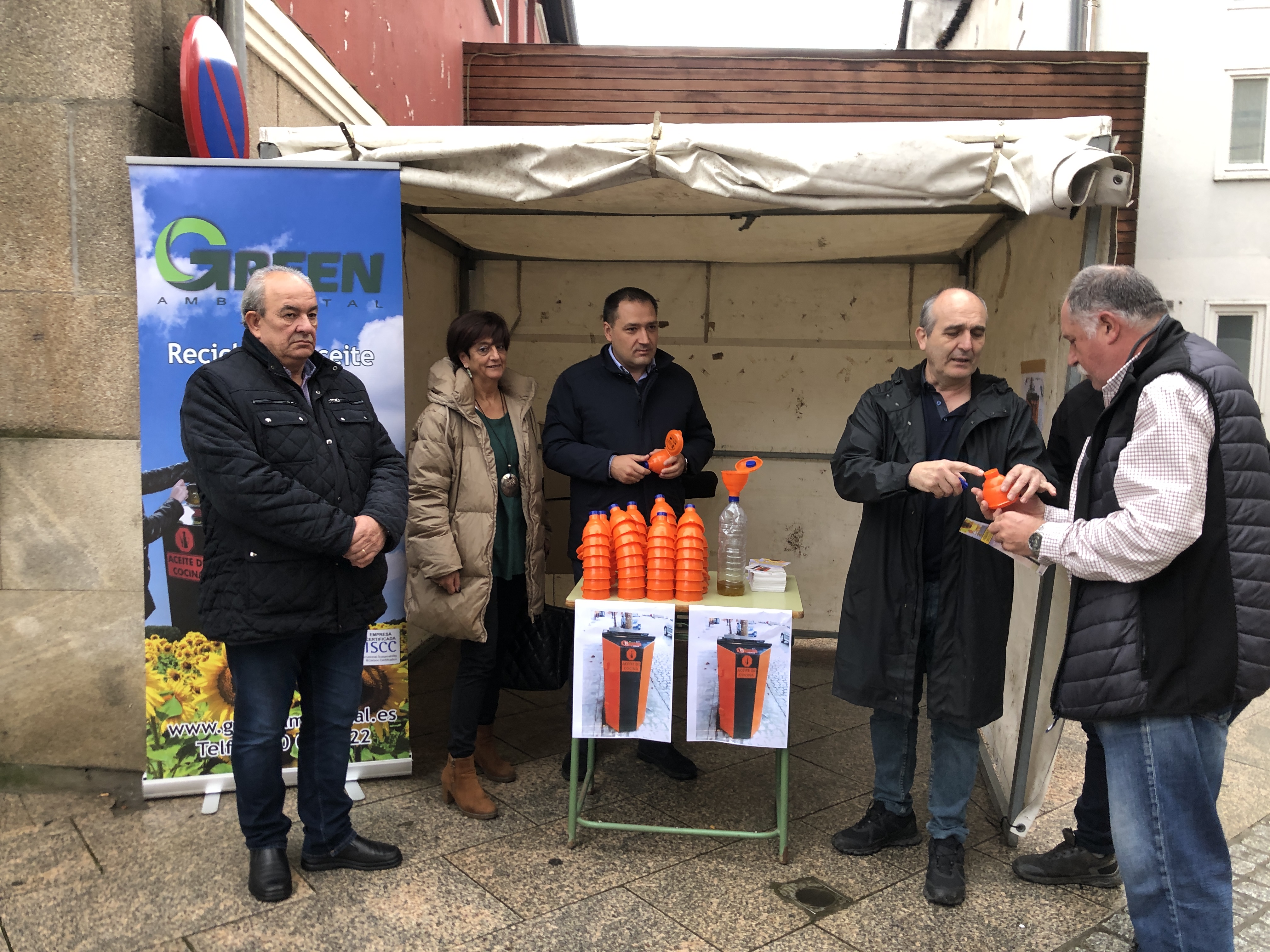 Monforte de Lemos, 16 de noviembre de 2022. La Teniente de Alcalde, Gloria Prada, el Concejal de Obras, Medio Rural y Servicios, José Luis Losada, y el Concejal de Medio Ambiente, Miguel Tomé, visitaron la carpa de la campaña informativa sobre el reciclaje de aceite de cocina usado que el Ayuntamiento ubicó tanto en la Plaza de Abastos como en la calle Cardenal o en la zona del nuevo parque del Barrio del Hospital.