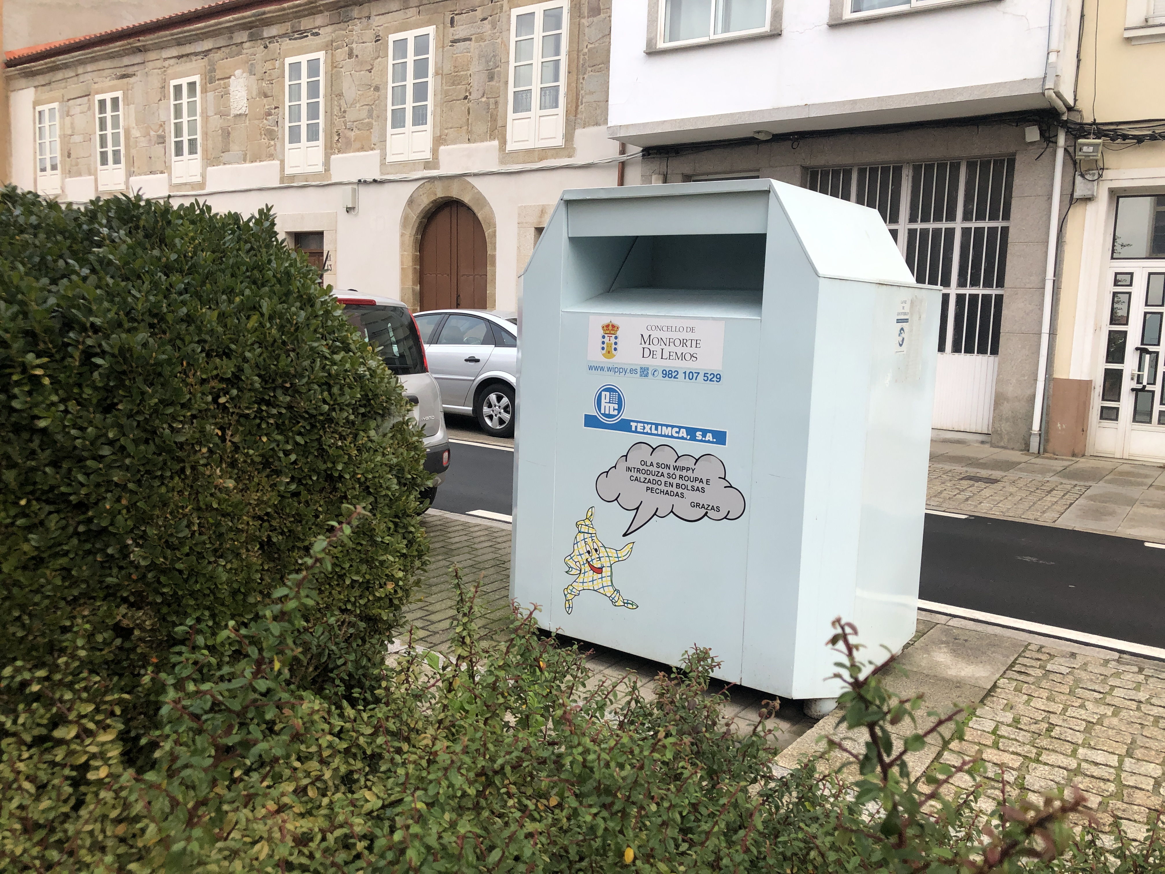 Monforte de Lemos, 3 de diciembre de 2022. El Alcalde de Monforte, José Tomé Roca, informa que el Ayuntamiento acaba de instalar, durante esta semana, 6 nuevos colectores para la recogida de ropa usada en la ciudad.