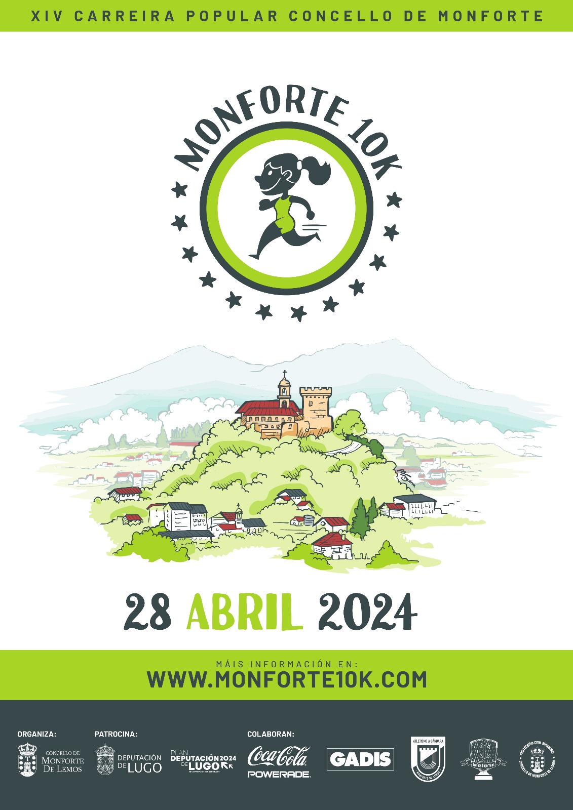 Monforte de Lemos, 1 de marzo de 2024. El Alcalde de Monforte, José Tomé Roca, acaba de anunciar la apertura del plazo para inscribirse en la “XIV Carrera Popular Ayuntamiento de Monforte 2024” que se celebrará el domingo 28 de abril de 2024, y tal como había anunciado hace unos días el regidor monfortino.