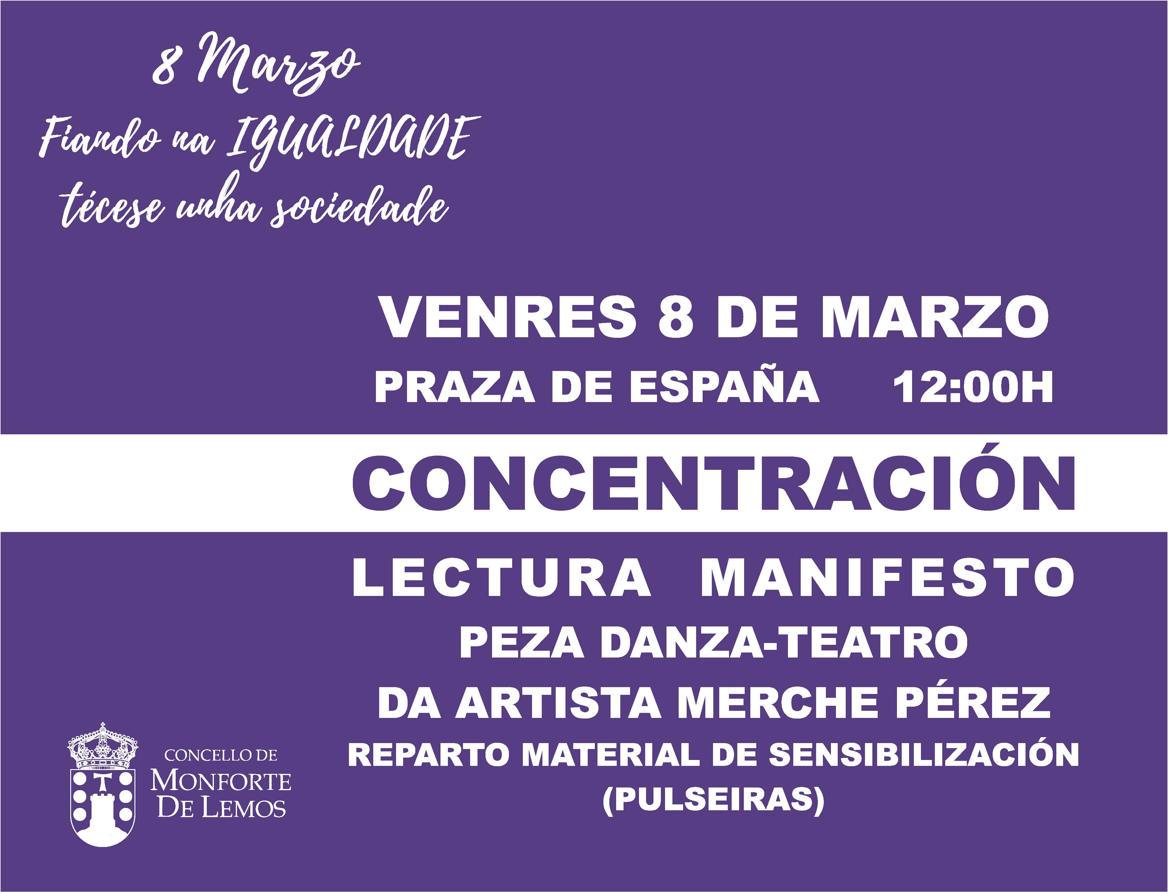Monforte de Lemos, 7 de marzo de 2024. El Ayuntamiento de Monforte celebrará mañana viernes 8 de marzo los actos centrales alrededor del 8M Día internacional de la Mujer.