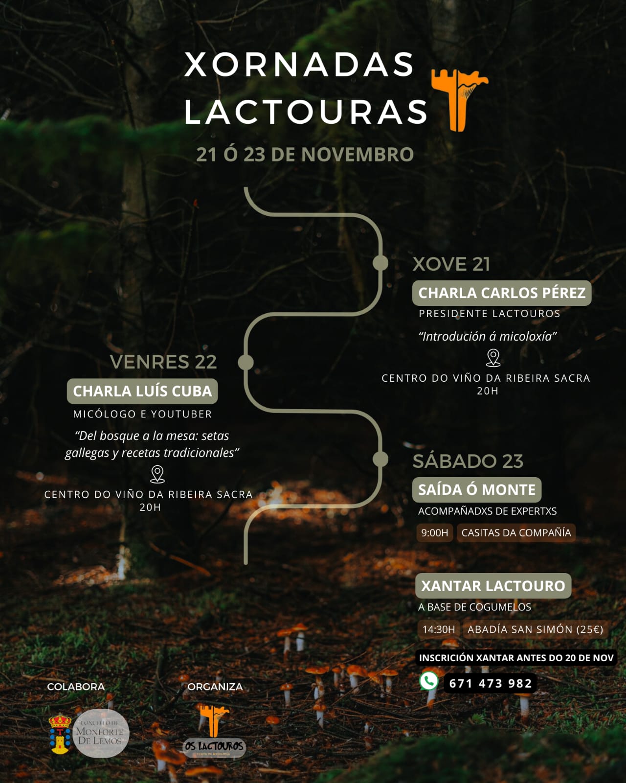 Monforte de Lemos, 5 de noviembre de 2024. El Equipo de Gobierno del Ayuntamiento de Monforte colabora un año más con la Asociación Micológica Lactouros, en la organización de las Jornadas Micológicas 2024, que tendrán lugar del 21 al 23 de noviembre .