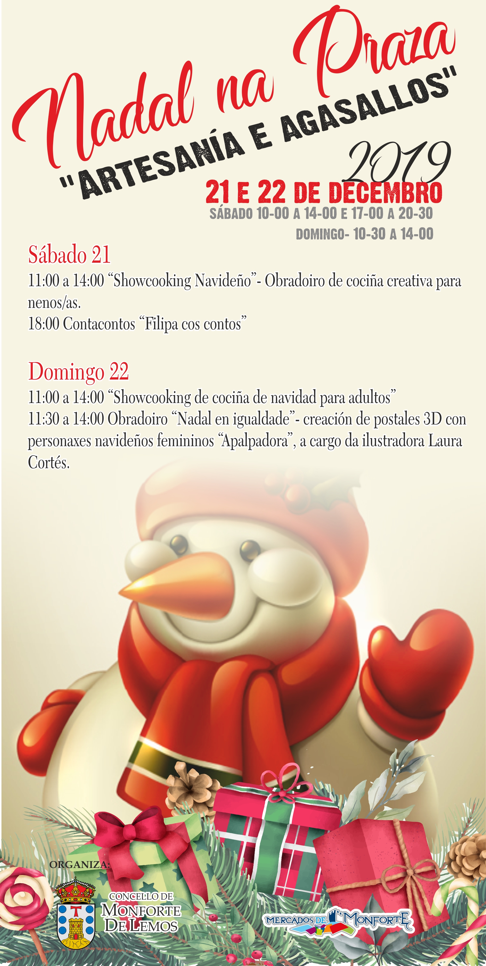 Monforte de Lemos, 17 de diciembre de 2019. El Ayuntamiento de Monforte está ultimando los preparativos para que la Plaza de Abastos acoja, un año más, el tradicional Mercado de Navidad en la Plaza de Monforte de Lemos, que se celebrará los días 21 y 22 de diciembre de 2019.