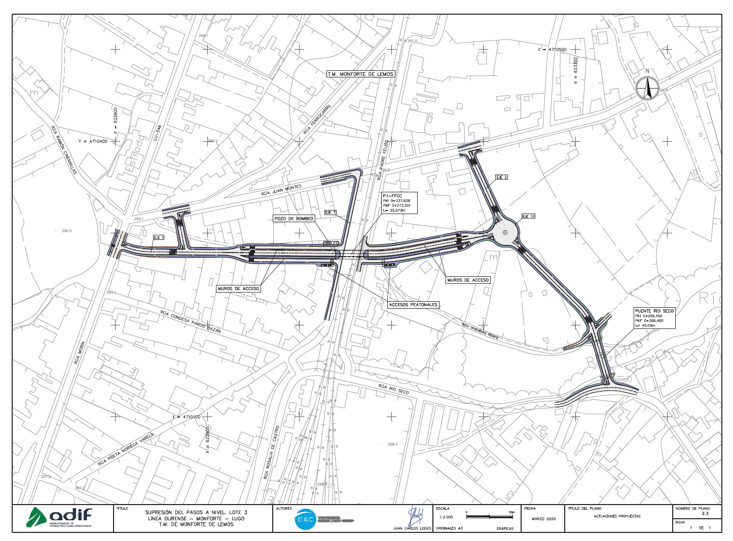 El Alcalde explicó que “hace algo más de un año, y después de muchas conversaciones, llegamos a un acuerdo con el ADIF para acometer por fases a supresión de los pasos a nivel. En una visita que hizo a Monforte, el responsable y Director del Proyecto, Javier Soto, decidimos empezar la redacción del proyecto, de manera coordinada con el Ayuntamiento, recogiendo la solución que ya habíamos propuesto para la mejora de la vía de Ourense-Monforte-Lugo, para Alta Velocidad”.