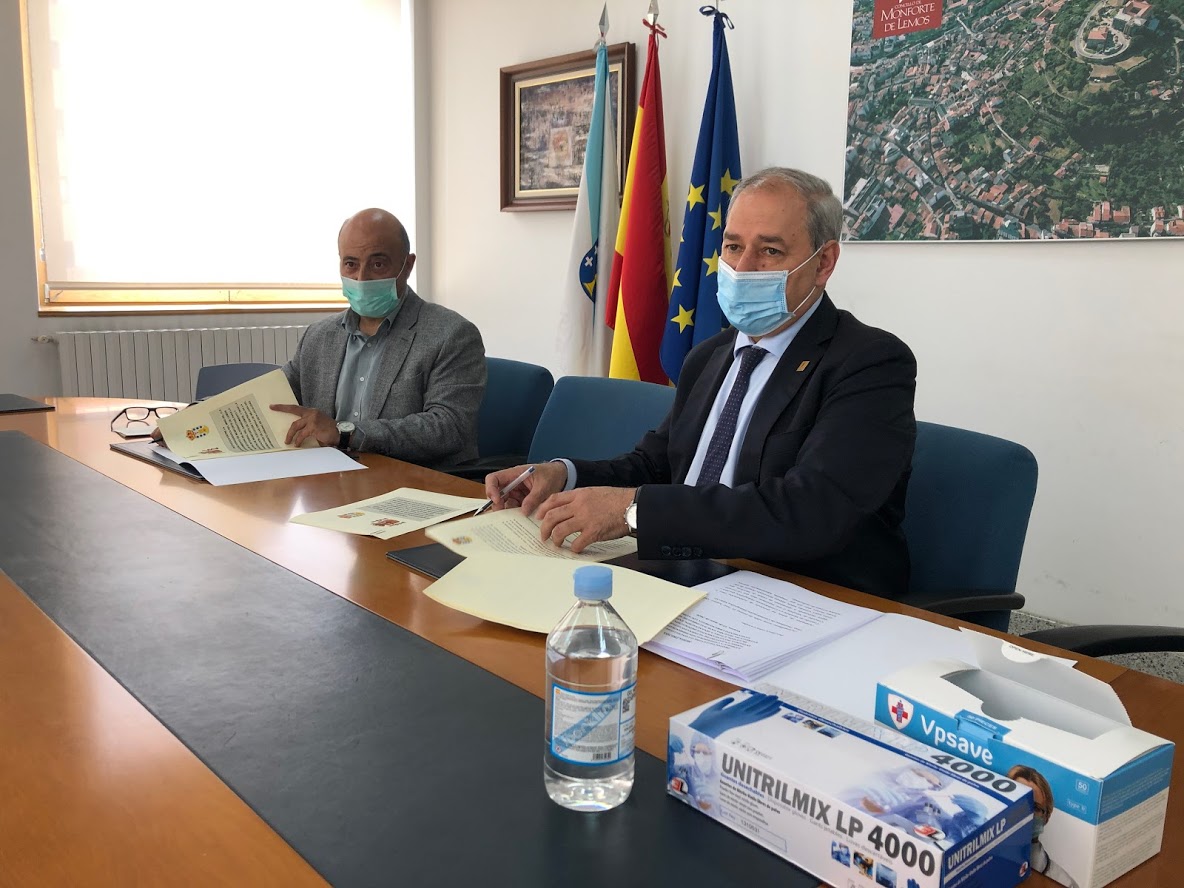 Monforte de Lemos, 15 de mayo de 2020. En la mañana de hoy, el Alcalde de Monforte, José Tomé Roca, convocó una rueda de prensa presencial, en la que se guardaron las correspondientes medidas de seguridad y higiene a causa del Covid-19, para dar cuenta de un importante acuerdo que el Alcalde firmó con el Presidente de la Confederación Hidrográfica Miño-Sil (CHMS), José Antonio Quiroga, quien también participó en dicha rueda de prensa.