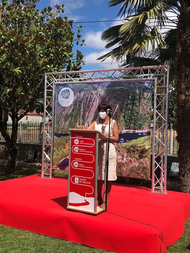 Monforte de Lemos, 28 de julio de 2020. La Primera Teniente de Alcalde del Ayuntamiento de Monforte, Gloria Prada, participó hoy en el acto inaugural del “ Networking Ribeira Sacra” organizado por la Asociación de Jóvenes Empresarios de Lugo (AJE Lugo) en Monforte, en colaboración con AJE Galicia y AJE Ourense.
