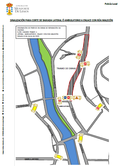 Monforte de Lemos, 13 de marzo de 2020. El Ayuntamiento de Monforte informa sobre la regulación del tráfico en la calle Dr. Casares por obras que se llevarán a cabo mañana sábado 14 de marzo, en el tramo entre la bajada lateral al Ambulatorio y el enlace con calle Malecón.