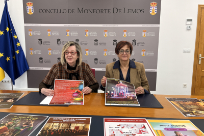 Monforte de Lemos, 2 de decembro de 2025. A Tenente de Alcalde do Concello de Monforte, Gloria Prada, e a Concelleira de Cultura, Marina Doutón, deron a coñecer hoxe en rolda de prensa ante os medios de comunicación o Programa de Actividades para este Nadal 2025-2026. Un amplo abano de propostas...O Alcalde asina un convenio coa Confederación Hidrográfica Miño-Sil para investir 7,9M€ na mellora do saneamento de Monforte