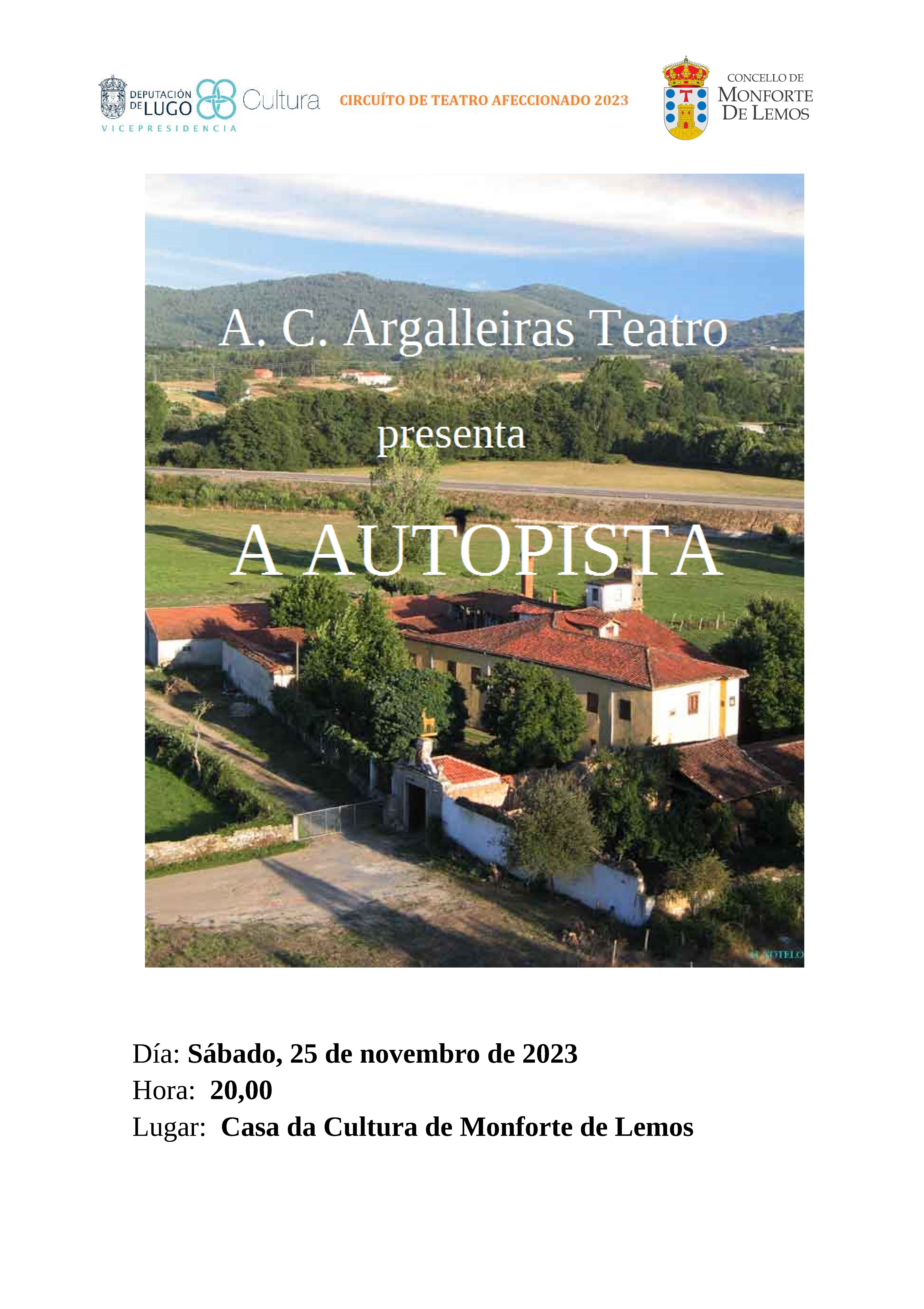 | Este sábado 25 de noviembre, teatro en la Casa de la Cultura de Monforte con A autopista, del grupo Argalleiras |