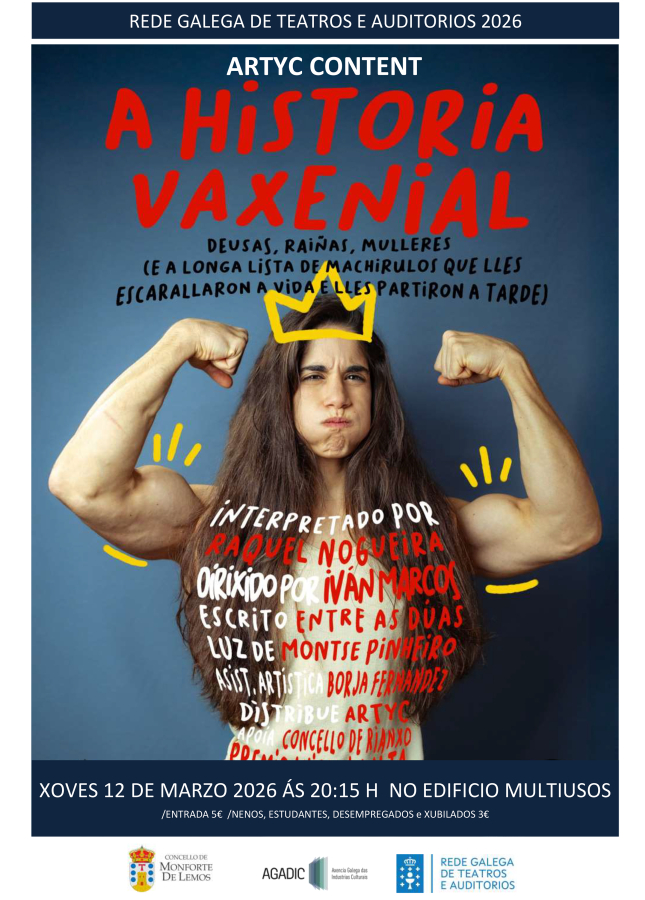 | TEATRO NO EDIFICIO MULTIUSOS XOVES 12 DE MARZO DE 2026 ÁS 20:15H ARTYC CONTENT presenta A HISTORIA VAXENIAL |