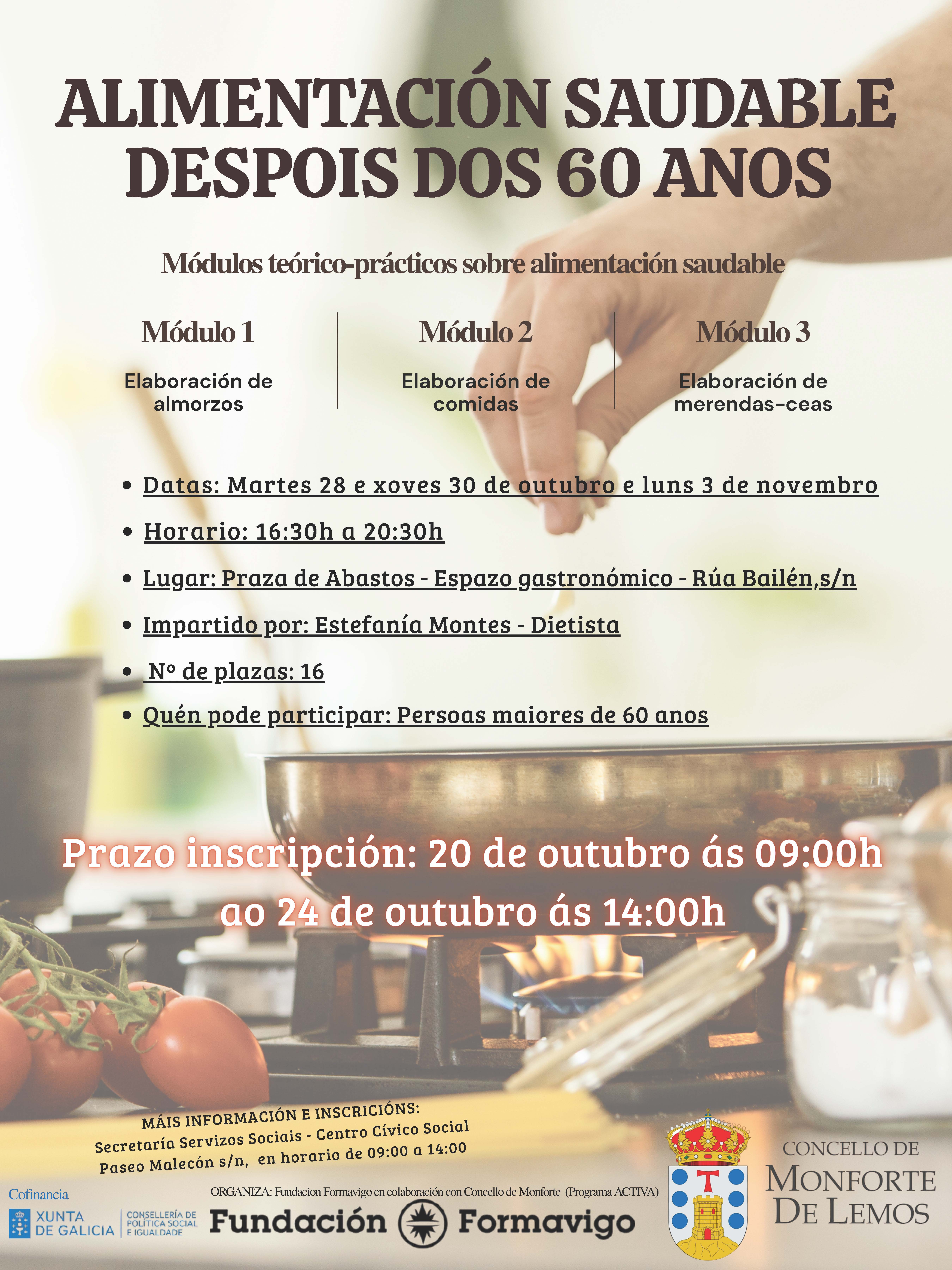| O Programa Activa oferta un obradoiro de Alimentación Saudable dirixido a persoas maiores de 60 anos |