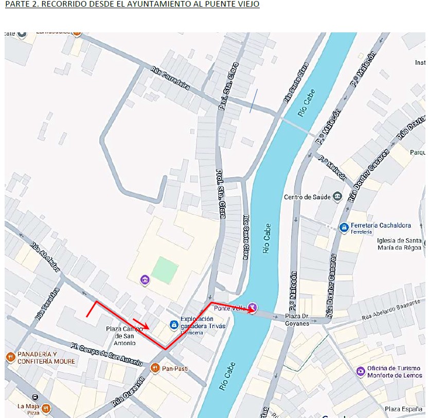 A partir das 21.00 horas, aproximadamente, ata a finalización do evento, non se poderá circular polas Rúas Méndez Casal, Santa Clara desde o enlace da Corredoira ata a Ponte Medieval, e a Ponte Medieval.