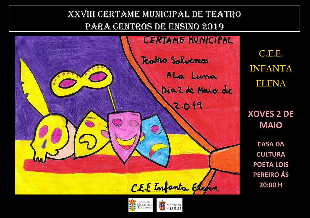 XXVIII Certamen Municipal de Teatro para Centros de Enseñanza de Monforte de Lemos: “Salvemos a la Luna” del CEE INFANTA ELENA, en el salón de actos de la Casa de la Cultura del Ayuntamiento el jueves 2 de mayo a las 20:00 h.