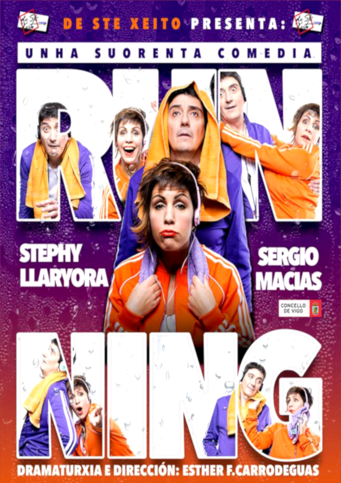 La compañía DE STE XEITO PRODUCIÓNS presenta RUNNING (una sudorosa comedia De Ste Xeito) obra compuesta y dirigida por Esther F. Carrodeguas e interpretada por Stephanie Llaryora y Sergio Macías.