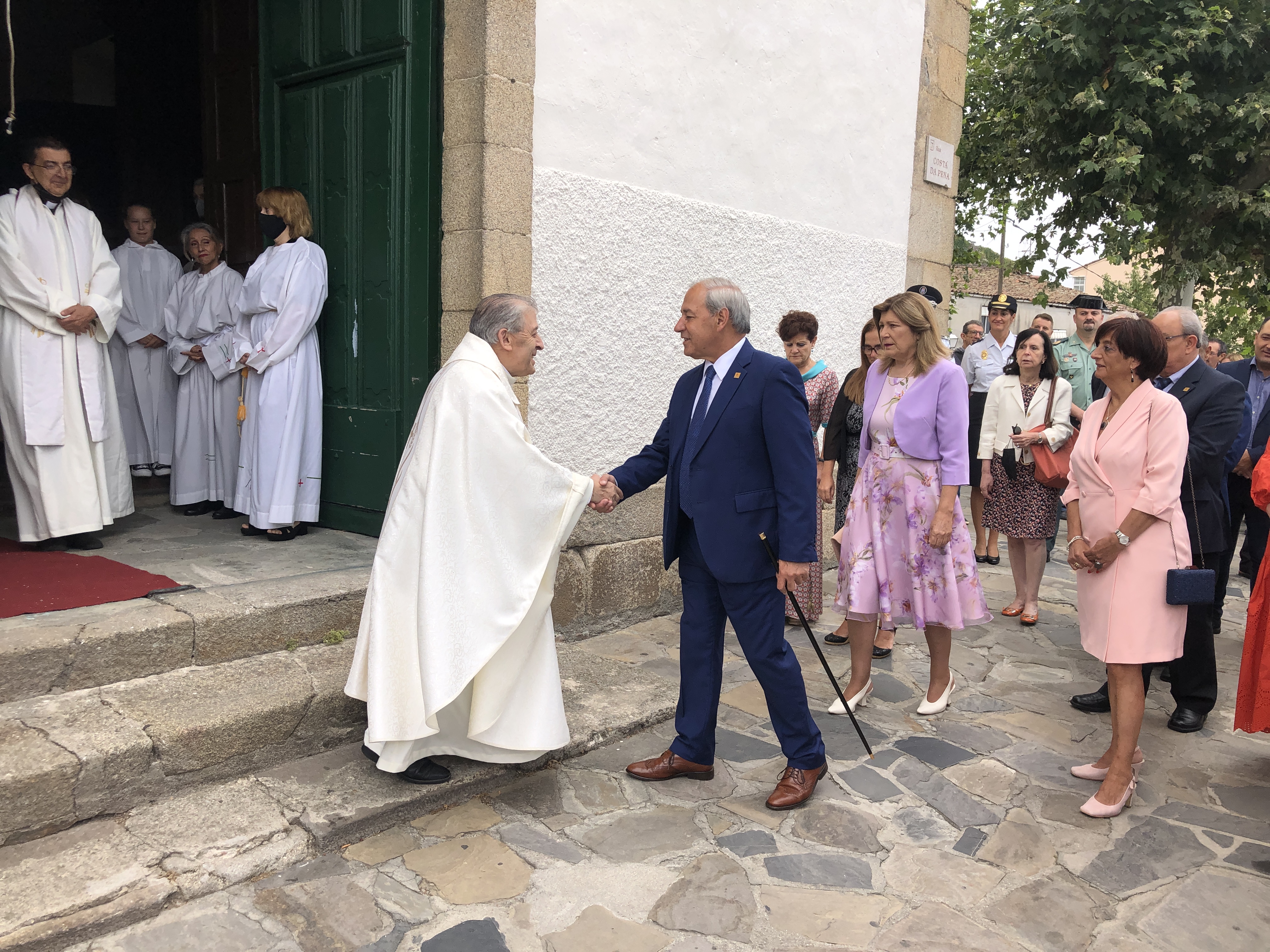 Deste xeito, a comitiva oficial encabezada polo Alcalde e formada por diversos membros da Corporación Municipal, así como por representantes dos Corpos e Forzas de Seguridade do Estado, isto é, Garda Civil, Policía Nacional e Policía Local, así como diversas autoridades de índole local, galego e nacional, partiu ás 10:45 horas da Praza do Concello, como é tradición, para dirixirse á igrexa da Régoa, acompañados polo Grupo de Baile Tradicional e a Banda de Gaitas do Concello de Monforte.