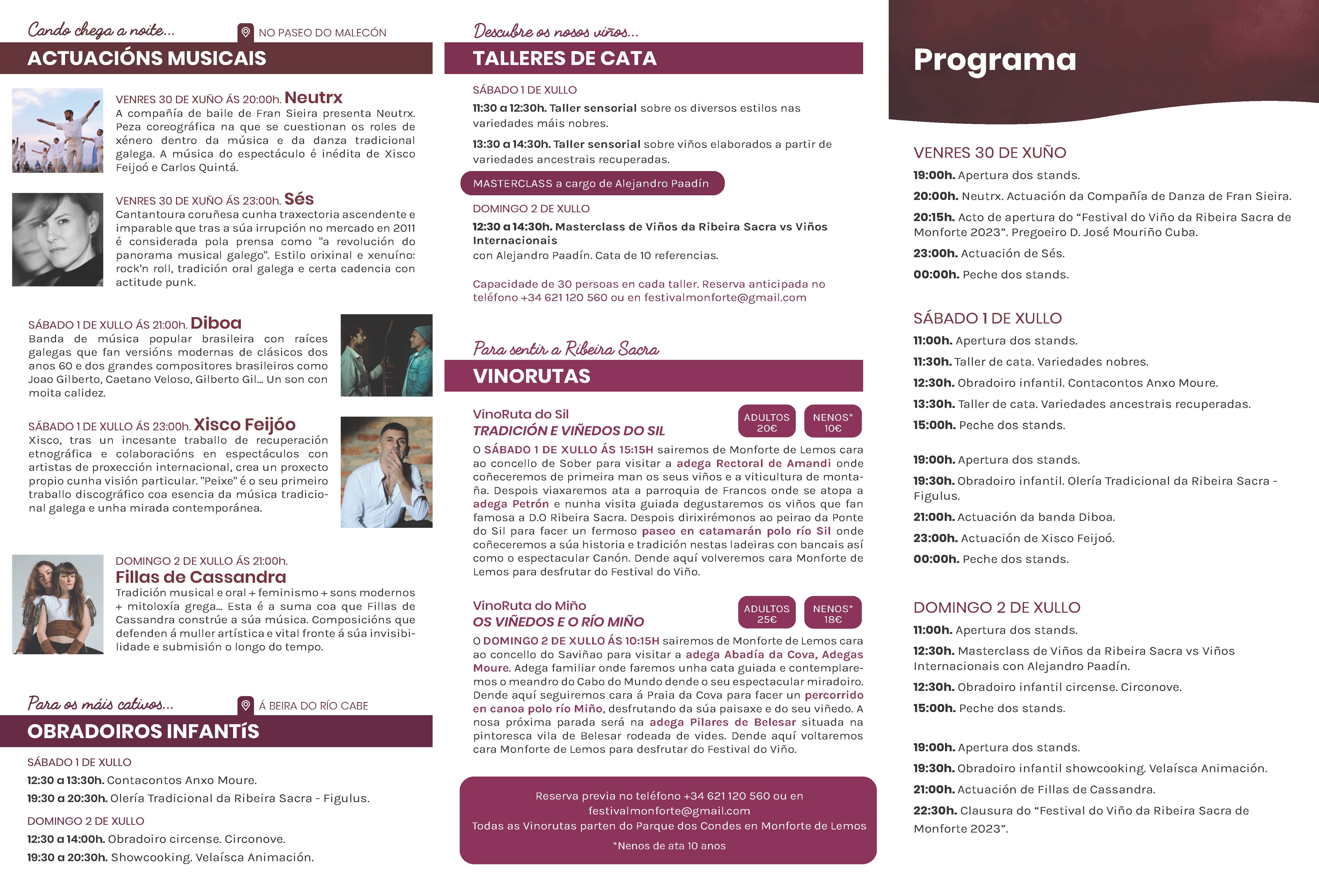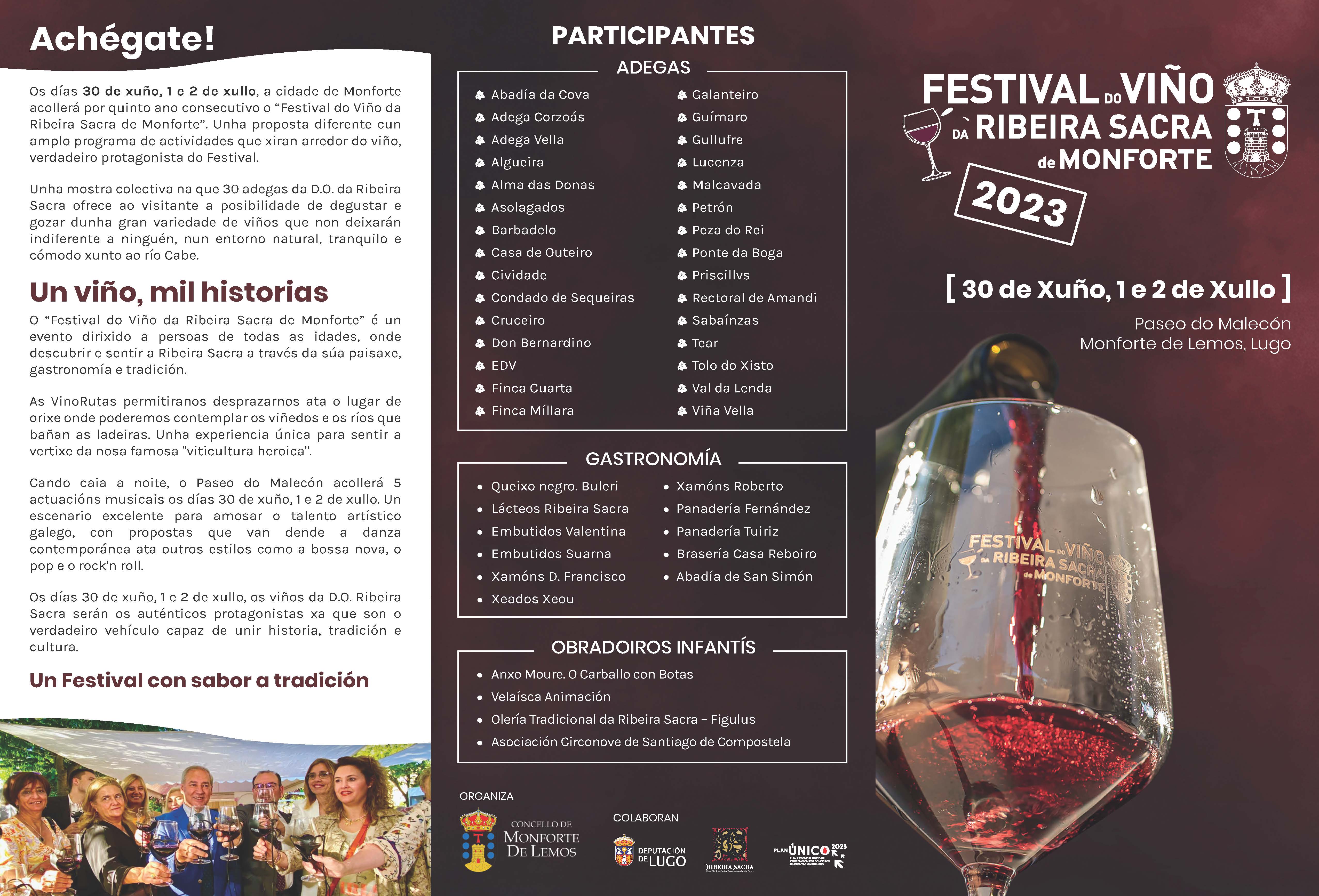 O Programa Oficial do Festival do Viño da Ribeira Sacra de Monforte 2023 será o seguinte: