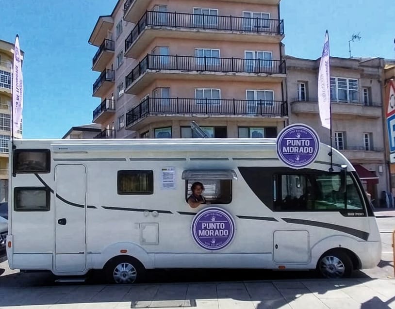 A caravana morada informa, asesora e visibiliza o rexeitamento comunitario do acoso e agresións de xénero a través de profesionais especializados en psicoloxía contra a violencia de xénero, criminoloxía e técnicos de igualdade ofrecen este servizo itinerante que nace en para chegar a todos os concellos, mulleres e público en xeral.