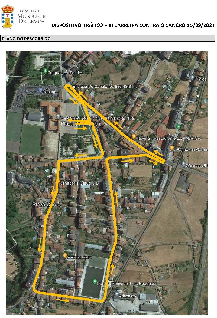 Deste xeito, todas as rúas indicadas estarán cortadas ó tráfico de vehículos durante o desenvolvemento da carreira o propio domingo 15 de setembro, dende aproximadamente as 11:45 h ata a finalización da mesma, que se estima entre as 13:00 e as 13:30 horas.