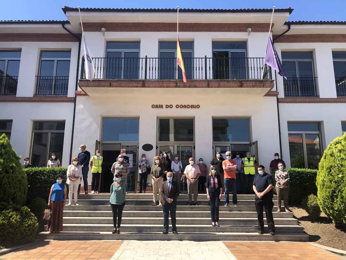 Monforte de Lemos, 27 de maio de 2020. O Concello de Monforte sumouse hoxe mércores 27 de maio ó minuto de silencio convocado a nivel estatal no primeiro dos dez días de loito oficial establecidos onte polo Consello de Ministros a través dun Real Decreto, polo que se declara loito oficial polos falecidos como consecuencia da pandemia COVID-19.
