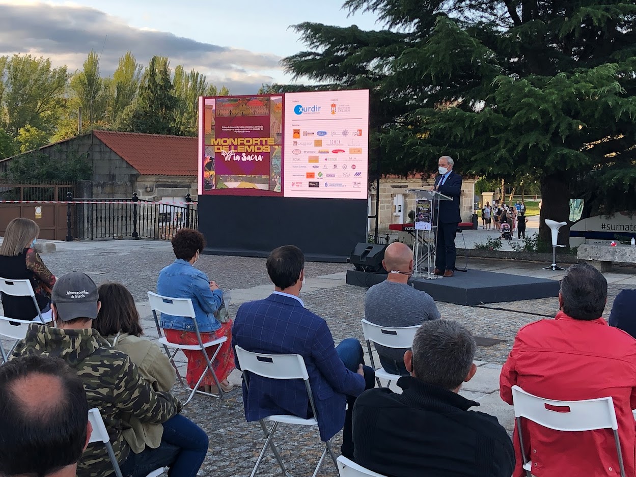 Monforte de Lemos, 23 de xullo de 2021. O Alcalde de Monforte, José Tomé Roca, foi o encargado de introducir a estrea do documental “Monforte de Lemos, Vía Sacra”, unha peza audiovisual na que o Concello monfortino levaba tempo traballando, en colaboración coa produtora Xurdir, e coa participación de diversas empresas monfortinas.