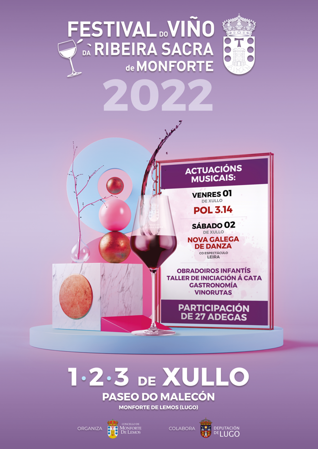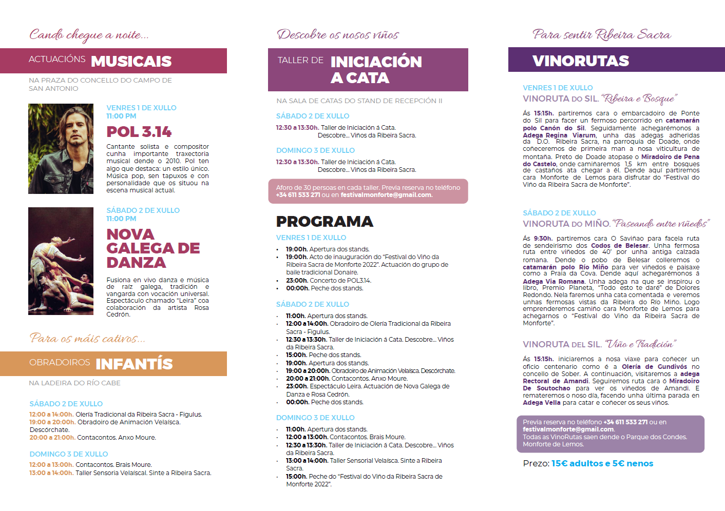 O Programa Oficial do Festival do Viño da Ribeira Sacra de Monforte 2022 será o seguinte: