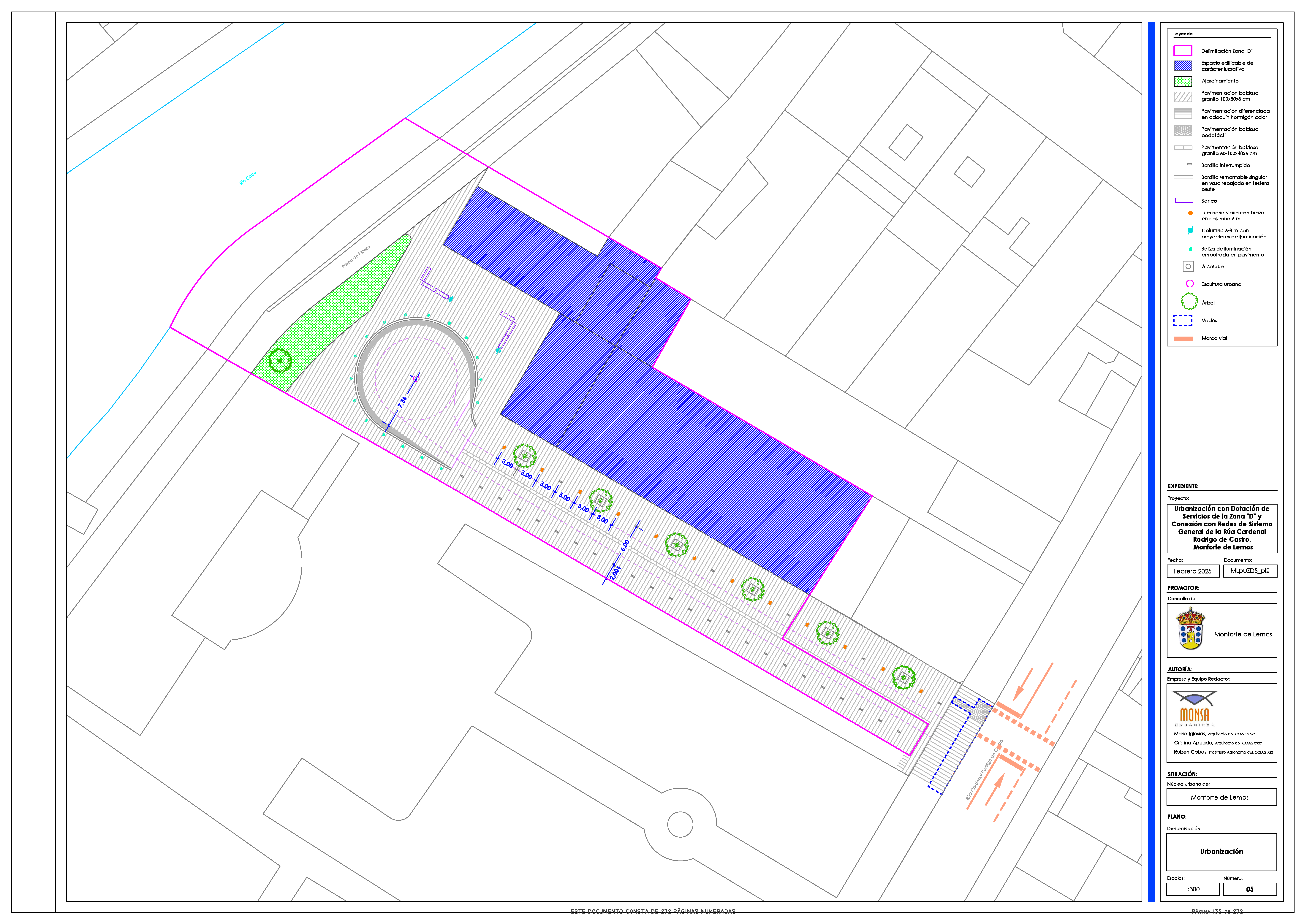 Monforte de Lemos, 26 de setembro de 2025. O Alcalde de Monforte, José Tomé Roca, anuncia o inminente inicio dos traballos de urbanización da ‘Zona D’, un espazo de máis de 3.200 m2 situado entre a céntrica rúa Cardenal e o río Cabe. O proxecto licitouse o pasado mes de xuño e foi adxudicado á empresa Extraco S.A. por un importe de 420.495,57€.