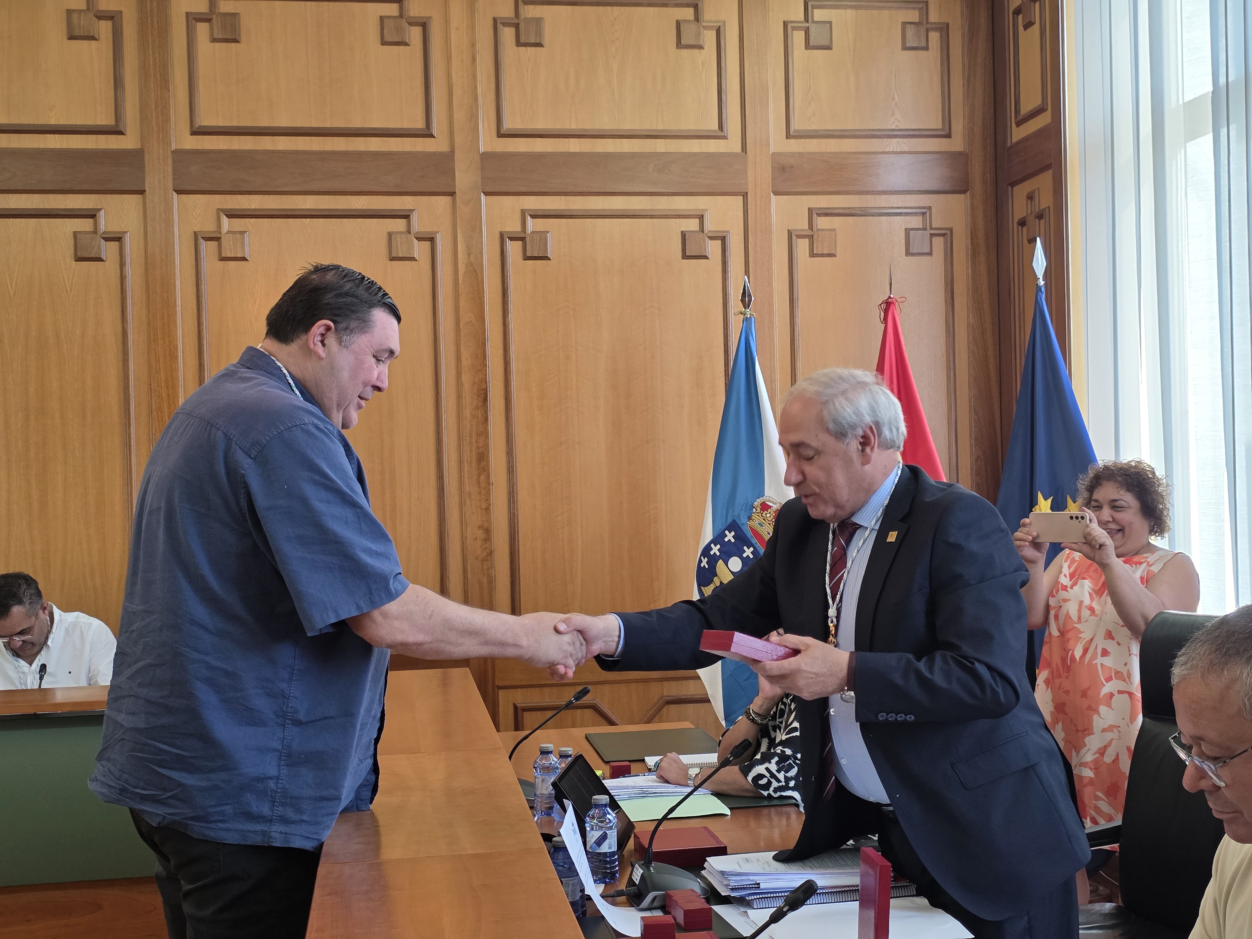 O Alcalde tamén lles entregou ós membros da Corporación Municipal a Insignia do Concello de Monforte de Lemos que é unha reprodución en miniatura do escudo oficial do Concello.