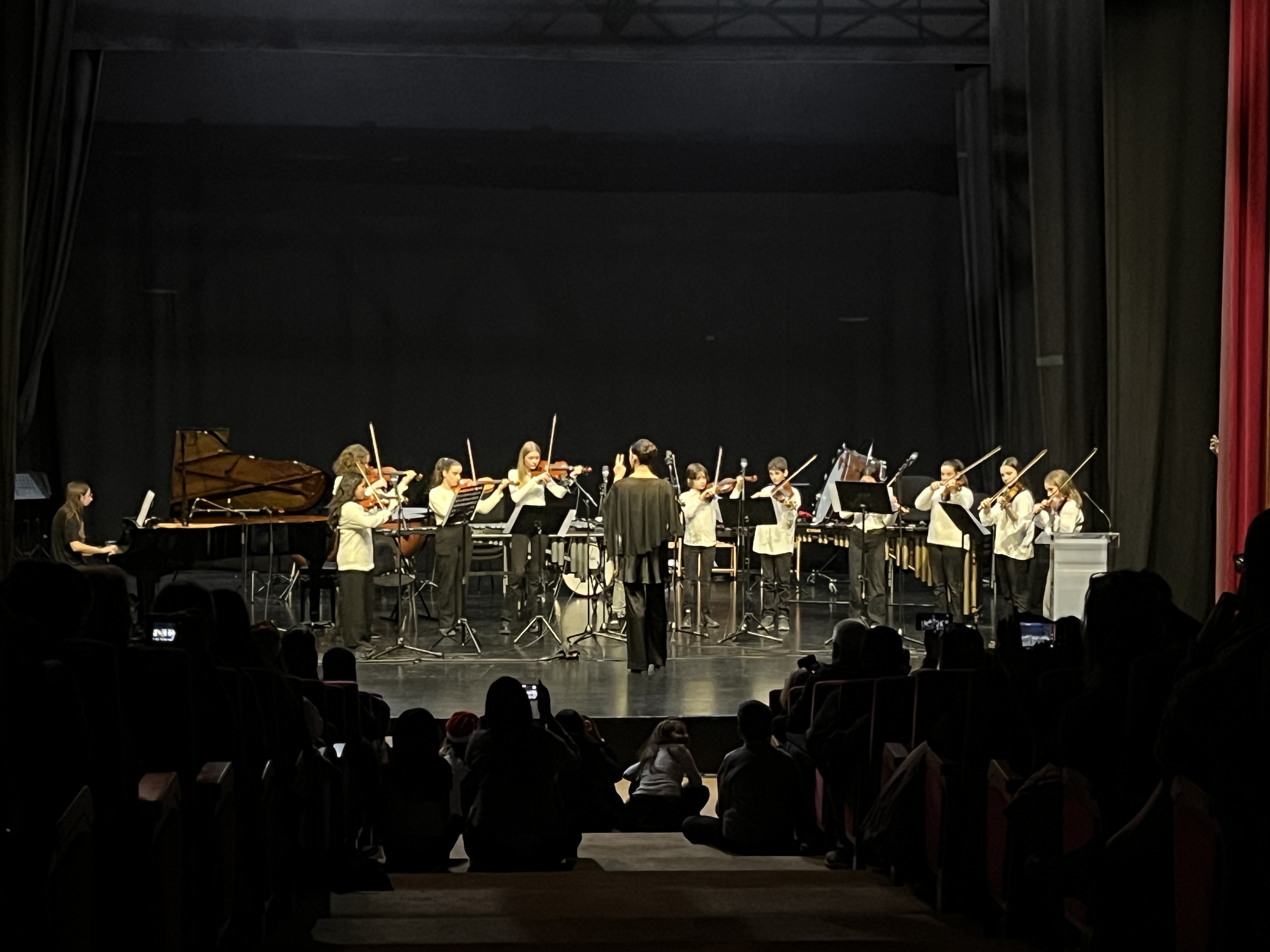 Monforte de Lemos, 20 de decembro de 2025. O alumnado e profesorado do Conservatorio ‘Mestre Ibáñez’ do Concello de Monforte ofreceron este venres, a partir das 20.00 horas, o seu tradicional “Concerto de Nadal”. A actuación tivo lugar no Edificio Multiusos e contou coa asistencia dos Concelleiros e Concelleiras do Equipo de Goberno José Luis Losada, Marina Doutón, José Manuel Mougán, Regina López, Guillermo Díaz e Margarita López, ademais de outros membros da corporación municipal.