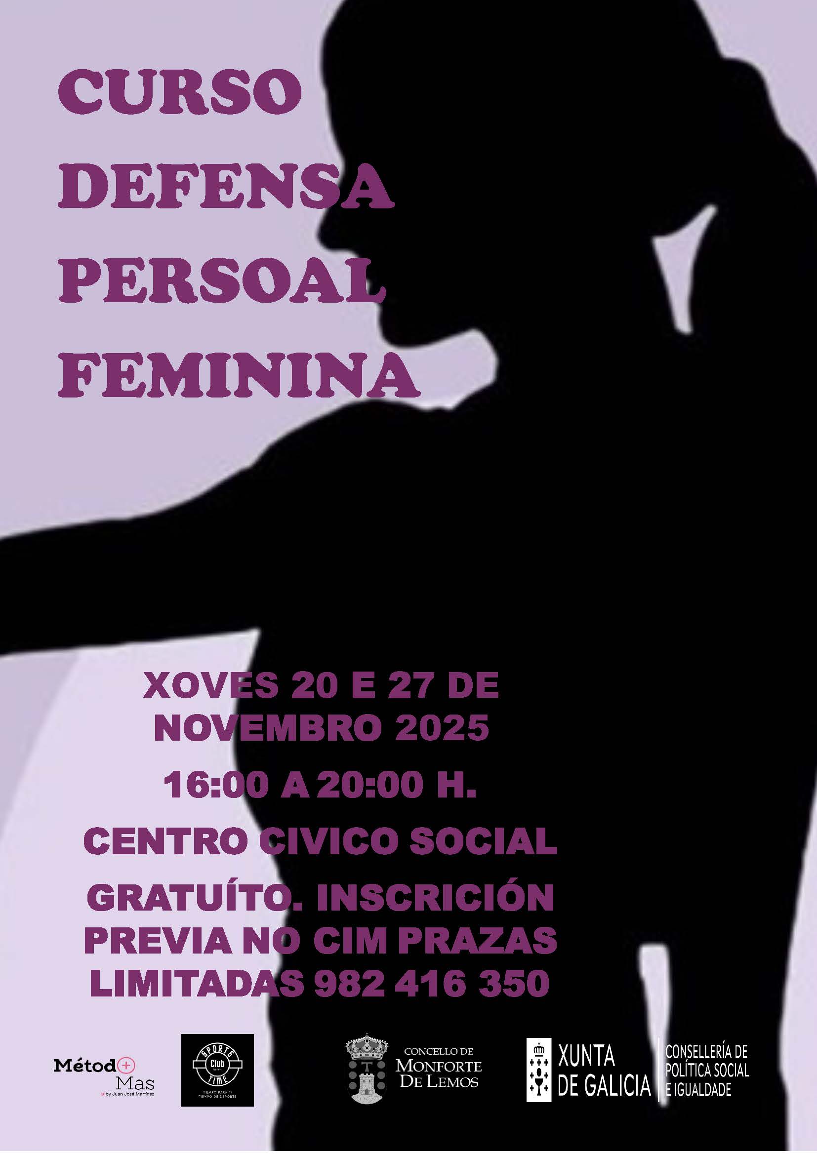 O Centro Cívico acollerá os días 20 e 27 de novembro un curso de Defensa Persoal Feminina para dotar ás mulleres participantes de ferramentas para a súa defensa persoal e capacitalas para previr situacións de violencia de xénero. Esta actividade repite no programa dende hai uns anos pola boa acollida que sempre ten entre as mulleres.