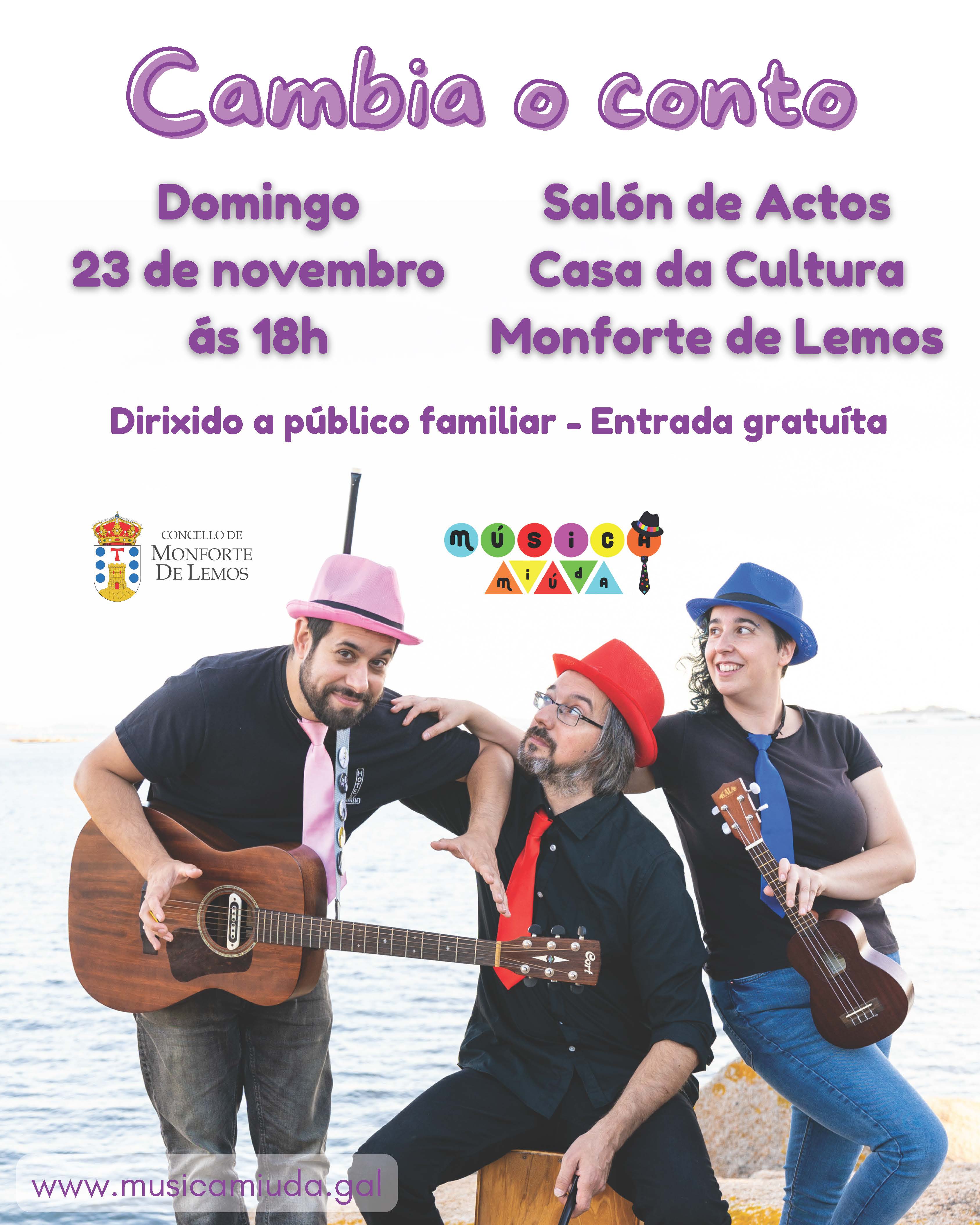 A campaña inclúe tamén actividades culturais dirixidas a sensibilizar ao público a través das artes escénicas. A primeira cita terá lugar o domingo, 23 de novembro, ás 18.00 horas, na Casa da Cultura, co Concerto-Contacontos “Cambia o conto”, a cargo do trío Música Miúda. Este espectáculo está dirixido ao público familiar e ten entrada gratuíta ata completar aforo.