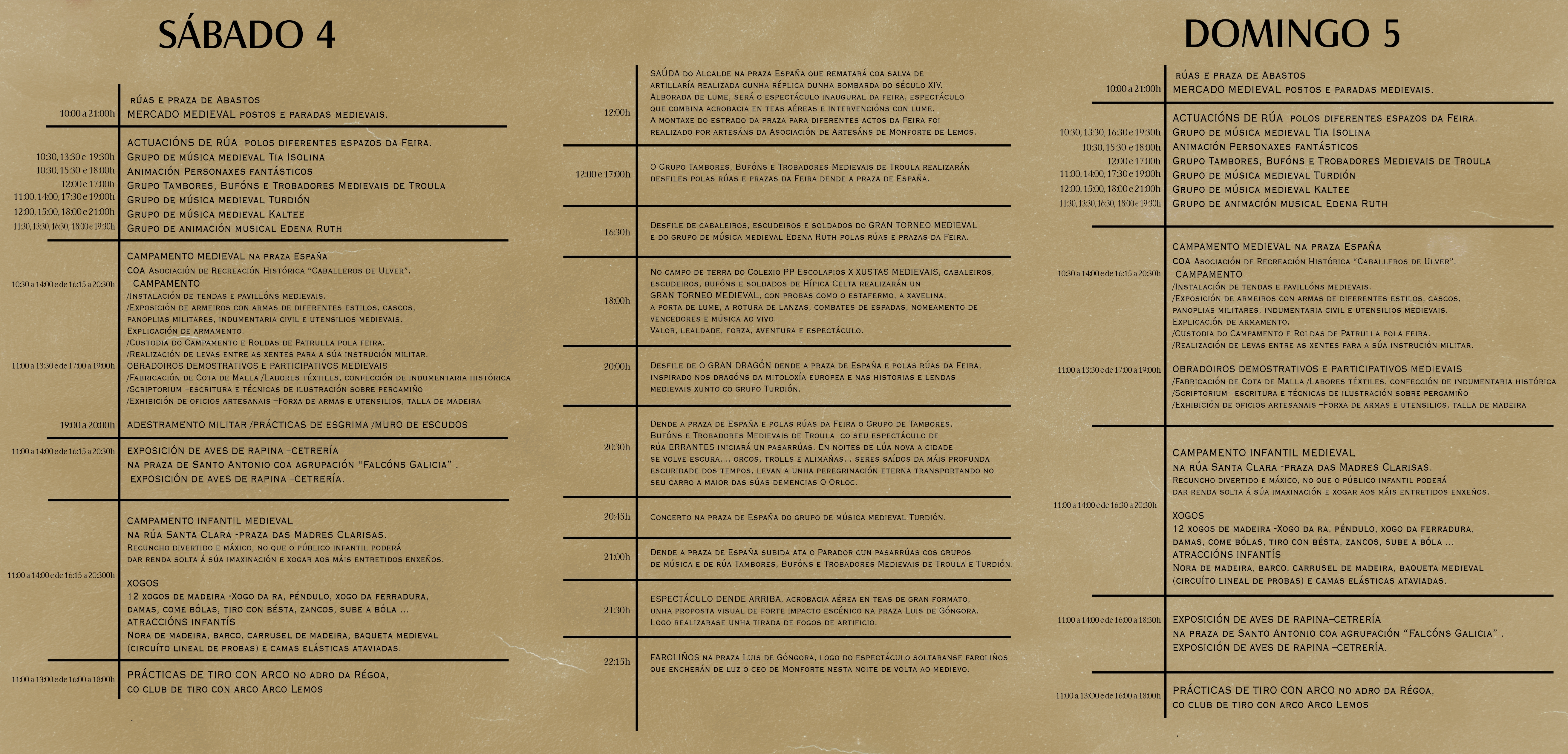 Os horarios do Mercado para a Medieval son os seguintes: