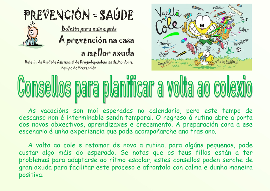 CONSELLOS PARA PLANIFICAR A VOLTA AO COLEXIO