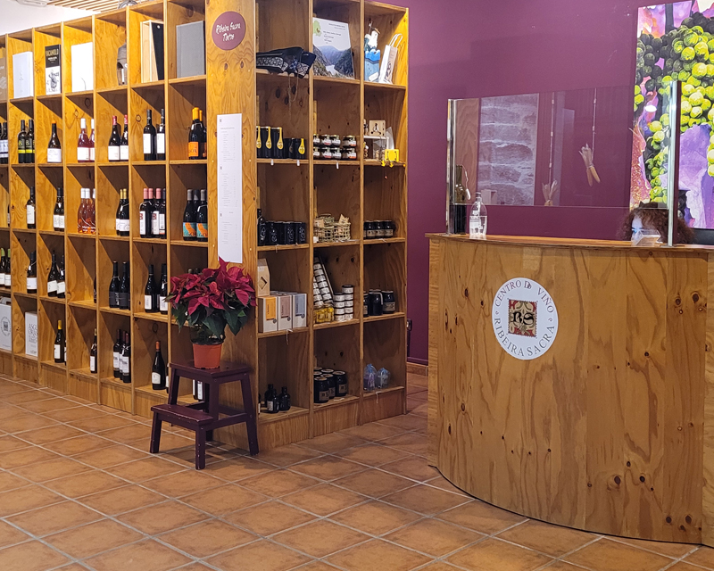 É a parada perfecta para todas as necesidades ó redor do viño. Copas, sacacorchos, decantadores, portabotellas e, por suposto, unha moi ampla selección de viño. Este é un magnifico lugar para atopar regalos para a familia ou amigos, para comprar o teu viño semanal ou para unha ocasión máis especial. Contamos con unha variada selección de viños da Ribeira Sacra, sendo esta a única viñoteca especializada nesta Denominación de Orixe; así coma de diversos productos da zona, coma licores, artesanía e un rincón de ecolóxicos.